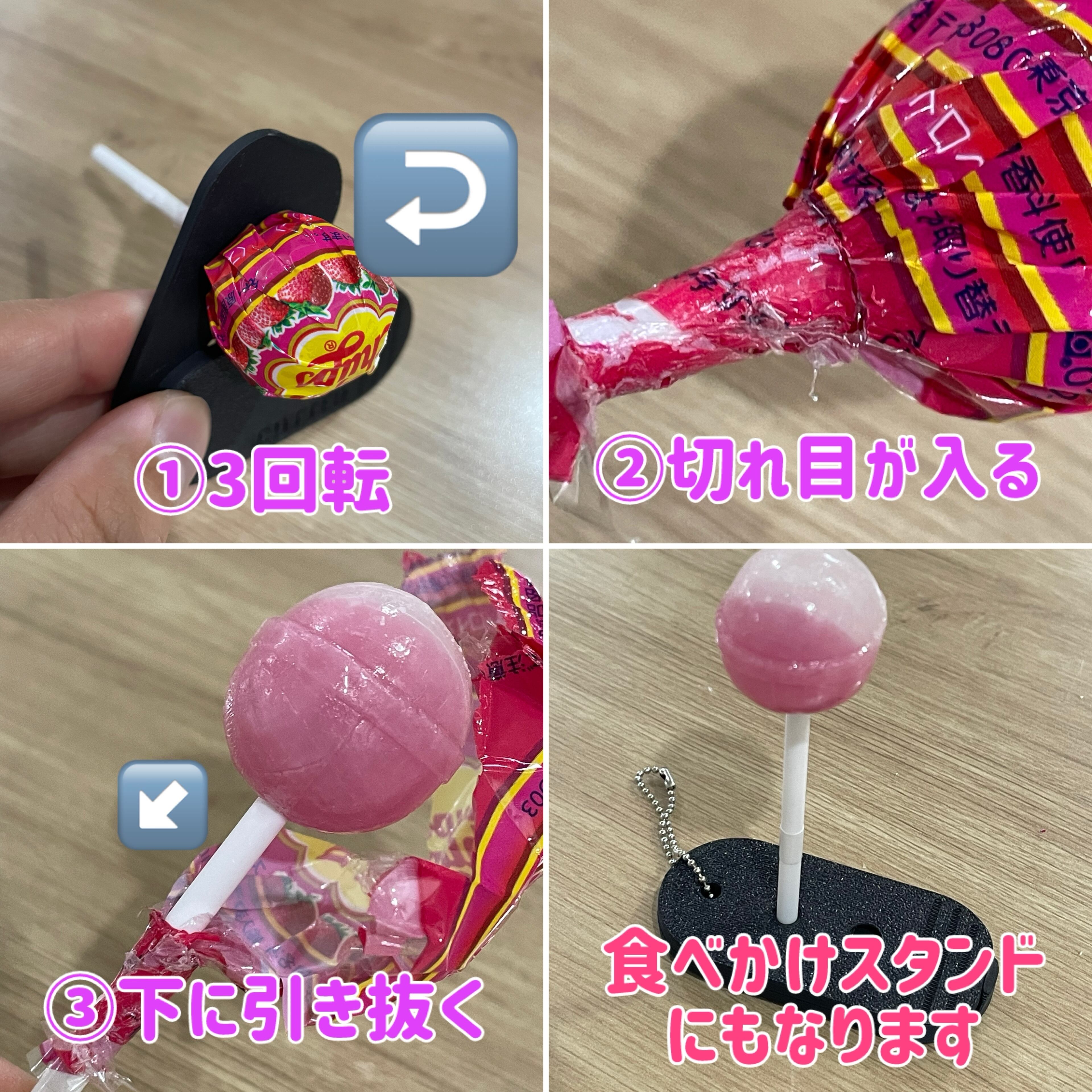 市販の棒付きキャンディ(チュッパチャプスやアメボー等)に対応しております。